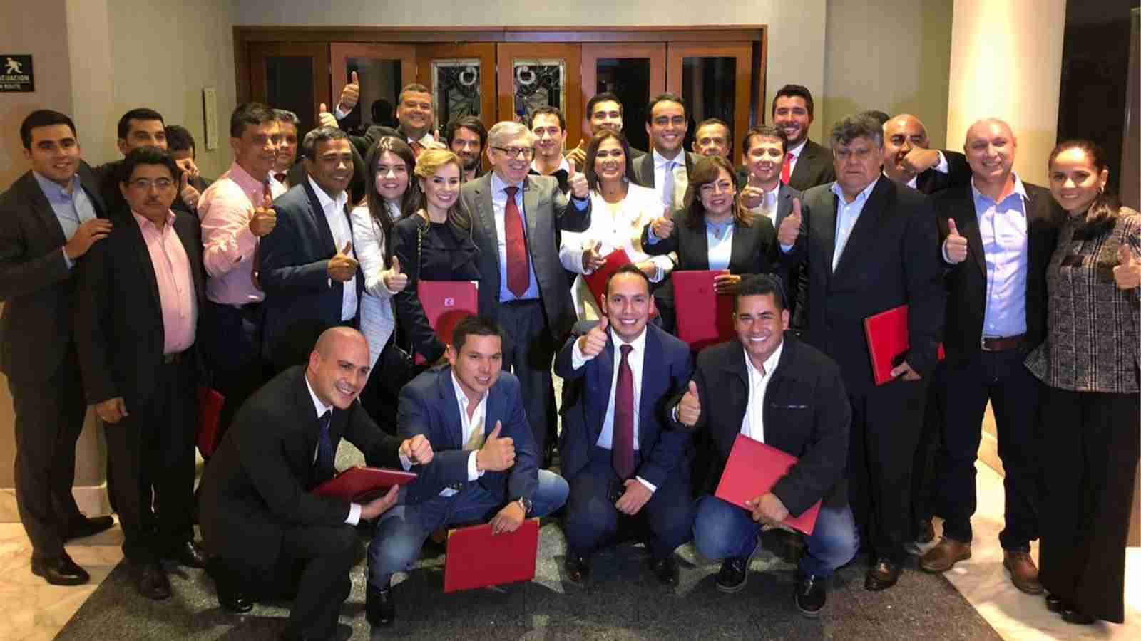 35 de 35 representantes reelegidos y elegidos por primera vez festejaron y homenajearon al jefe único de la colectividad César Gaviria.