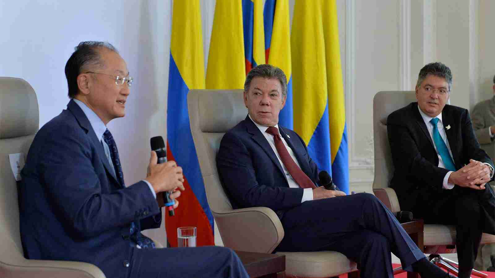 El presidente del Banco Mundial, Jim Yong Kim, quien está de visita oficial en Colombia, señaló que nuestro país es uno de los puntos brillantes de la economía de Latinoamérica y del mundo, por eso anunció que esa entidad financiera mundial desembolsará este año 1.400 millones de dólares, tras resaltar los beneficios que tendrá la Nación con la terminación del conflicto armado.