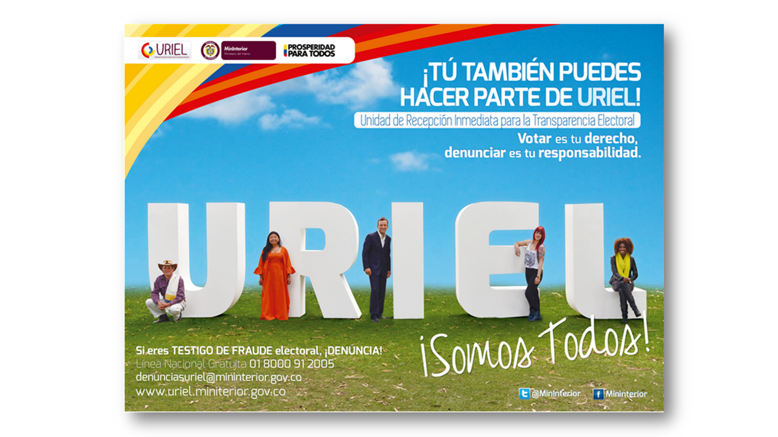 Es por ello que debemos denunciar las irregularidades y los delitos electorales que se presenten en nuestros centros de votación y comunidades en @UrielColombia, la Unidad de Recepción Inmediata para la Transparencia Electoral, encargada de la recepción, análisis y traslado de las denuncias y quejas sobre procesos electorales a las autoridades competentes.