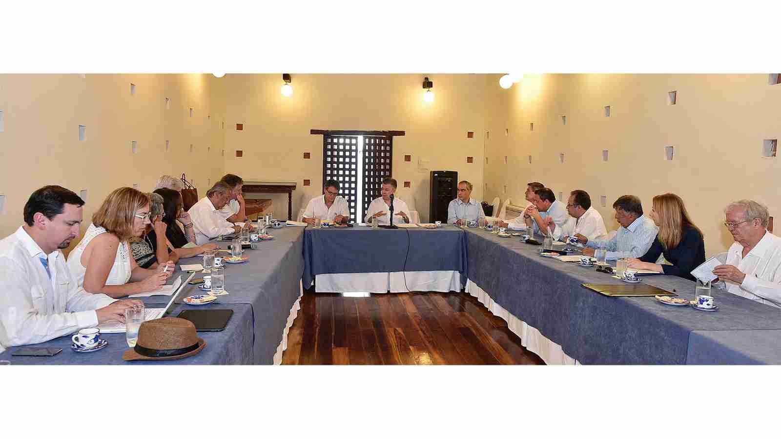 El Presidente Santos cumplió este fin de semana en Cartagena una reunión de trabajo con el Alto Comisionado para la Paz, Rodrigo Rivera; el Jefe del Equipo Negociador, Gustavo Bell, e integrantes de la delegación del Gobierno Nacional en el proceso de paz con el Eln, que se realiza en Quito, Ecuador.